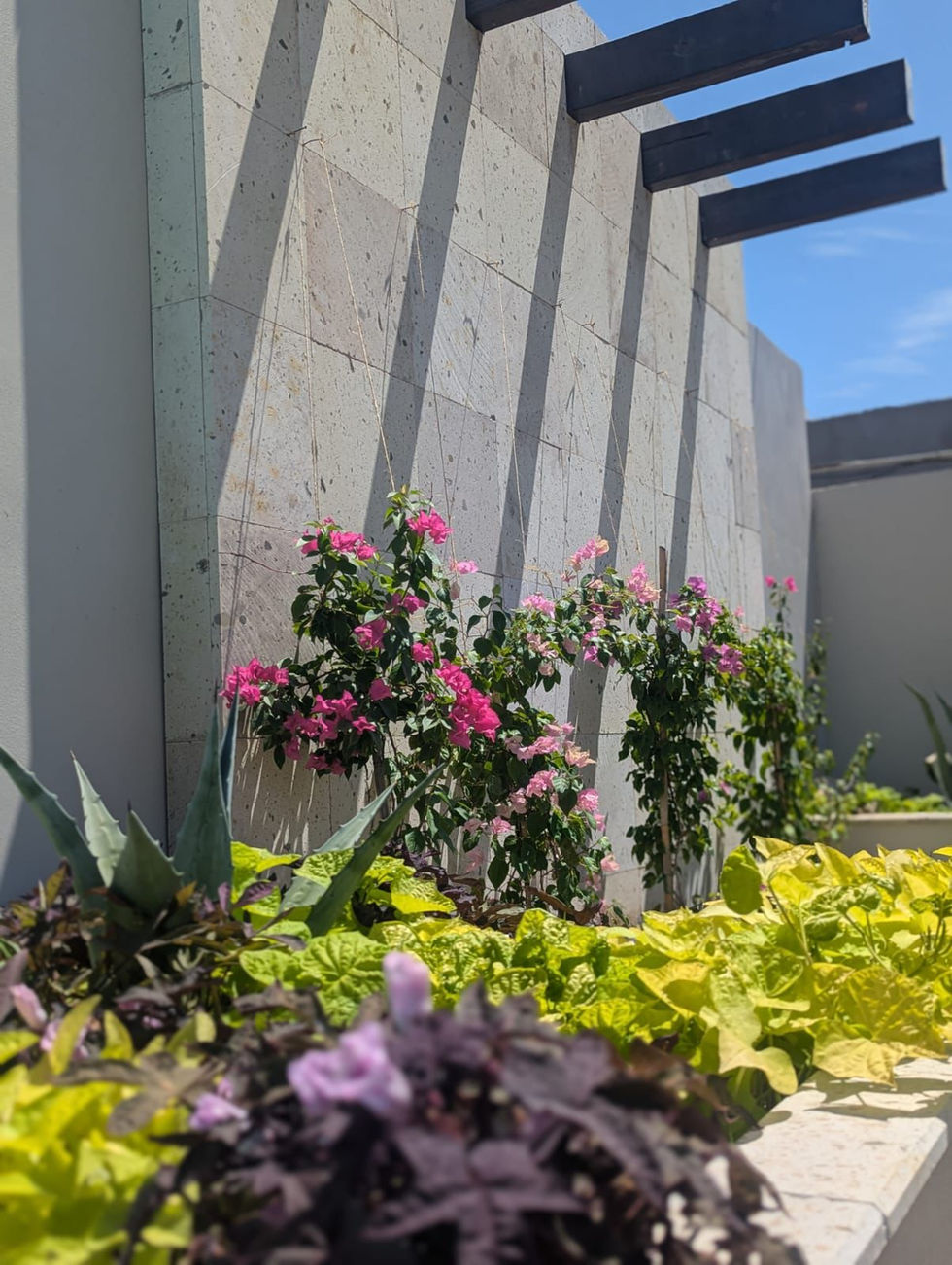 Se trabajo diseño de sistema de riego al igual que un diseño de paisaje que complementa el espacio disponible. Se incluyeron caminos peatonales y areas de estar que ofrecen una oportunidad de disfrutar el paisaje.